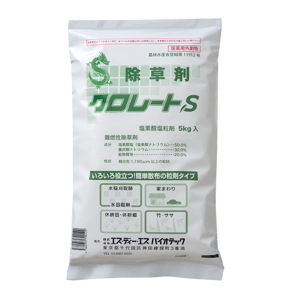 クロレートSは塩素酸ナトリウムを有効成分とする非選択性の緑地管理用除草剤です。