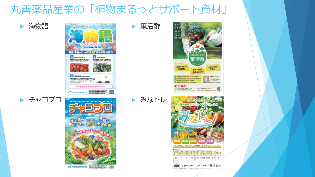 →植物本有の生体防除能力を増強、静菌作用、発根促進作用、抗酸化・低硝酸化でアミノ酸増量・食味向上