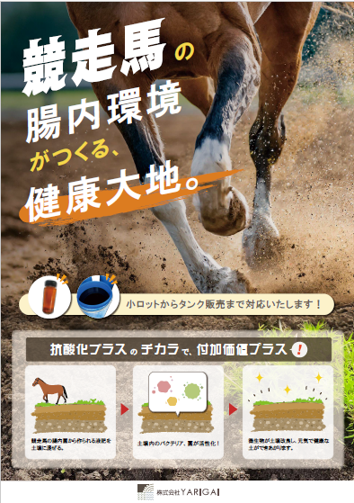 弊社の土壌活性剤は、競走馬の馬糞から抽出した液肥となります。