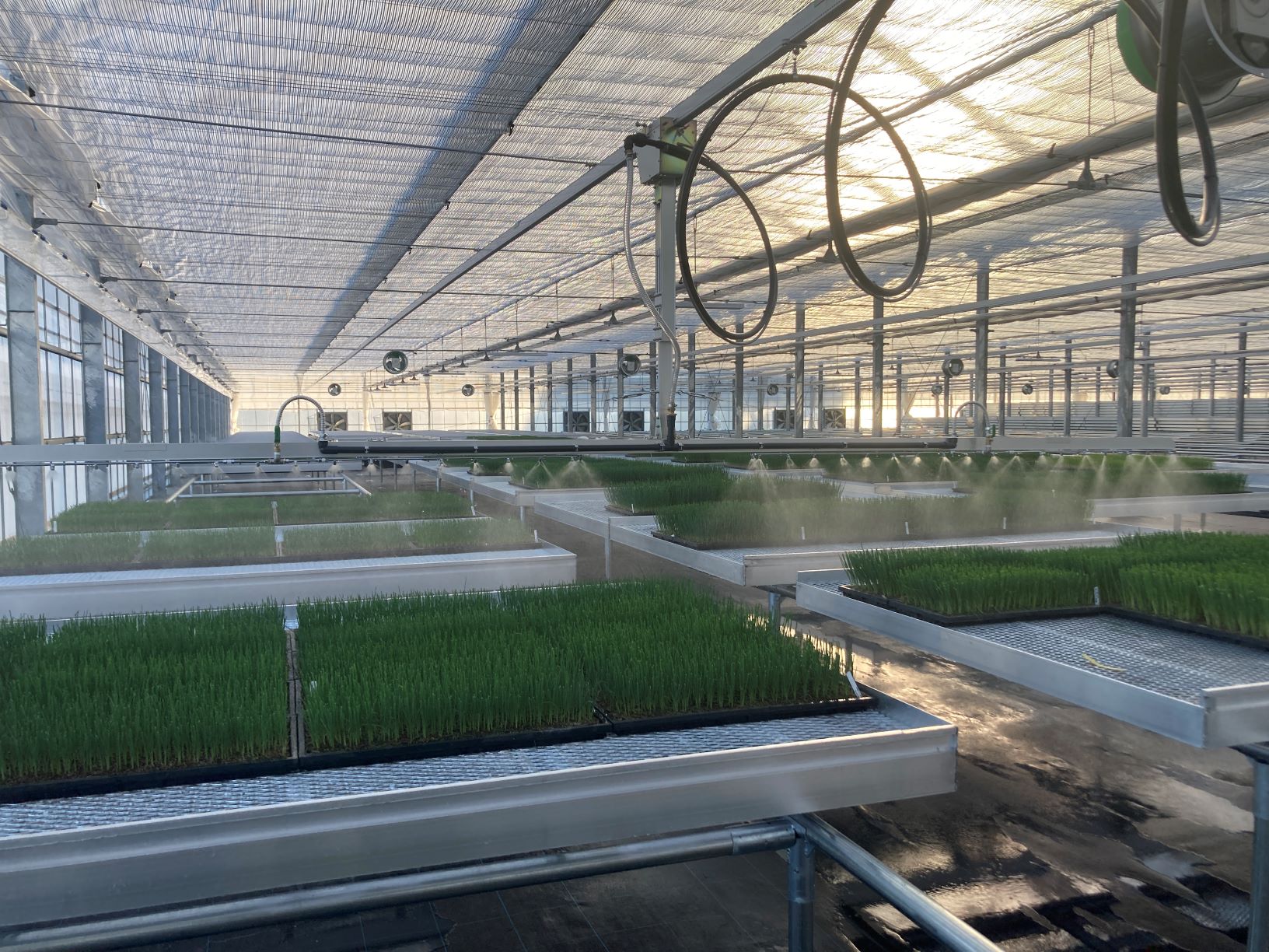 気化パッドを設置し、夏場の猛暑対策としてハウス内部の温度を下げる事が可能となりますので、