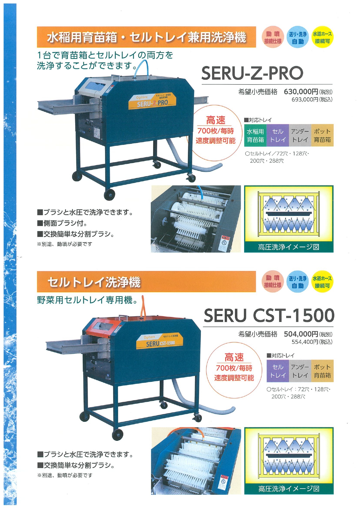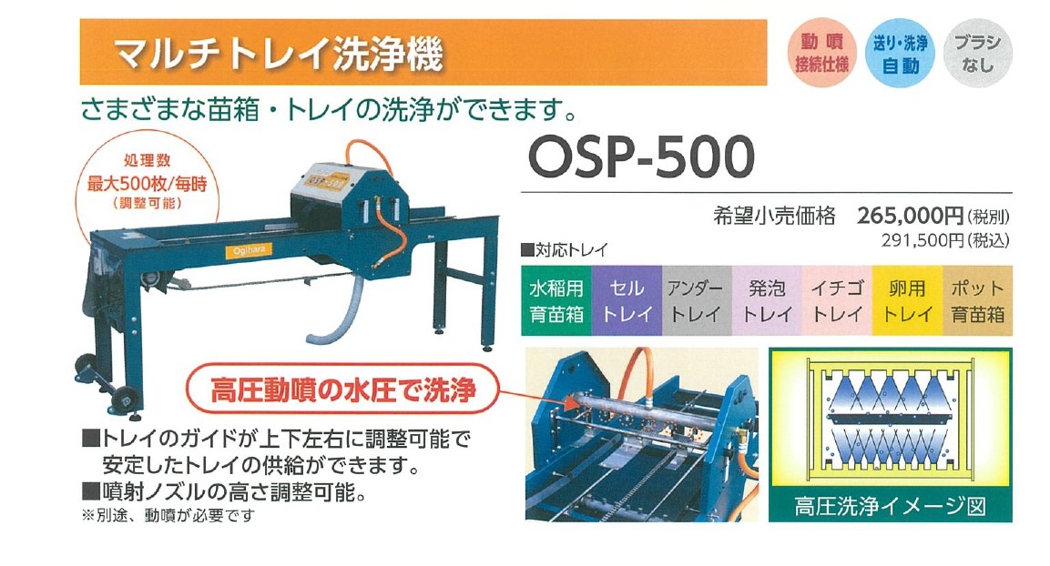 育苗用トレイや苗箱を洗う洗浄機