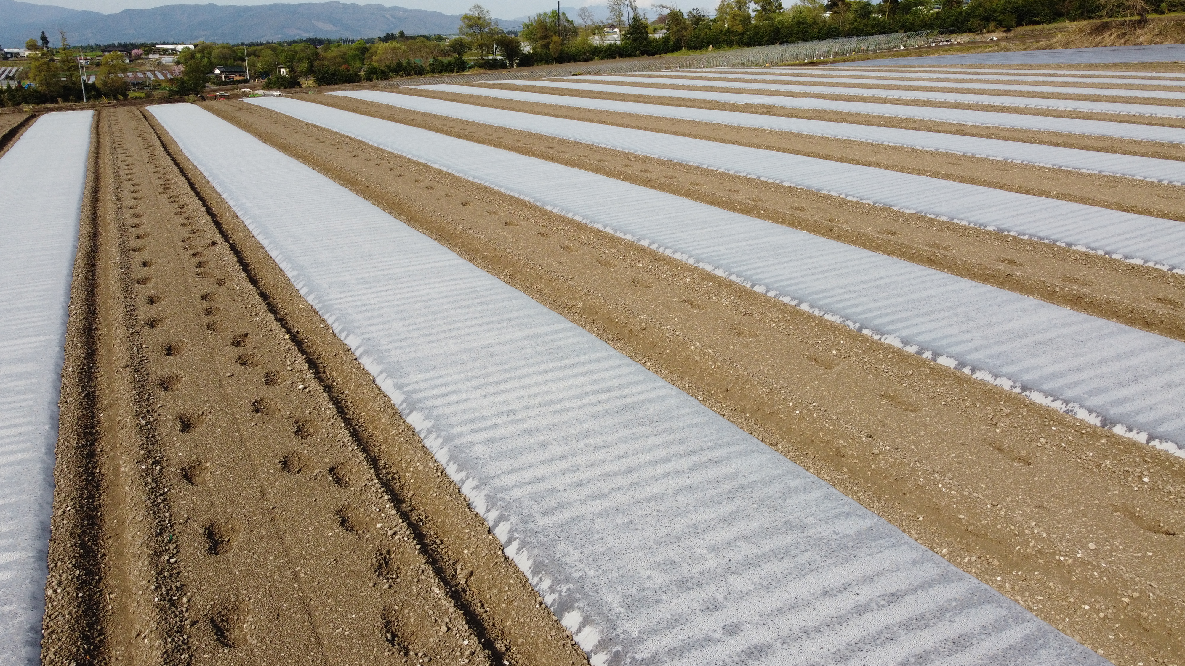 こんにゃく芋の栽培カレンダーに適した生分解性を持つ土壌消毒用の生分解性マルチフィルムです。